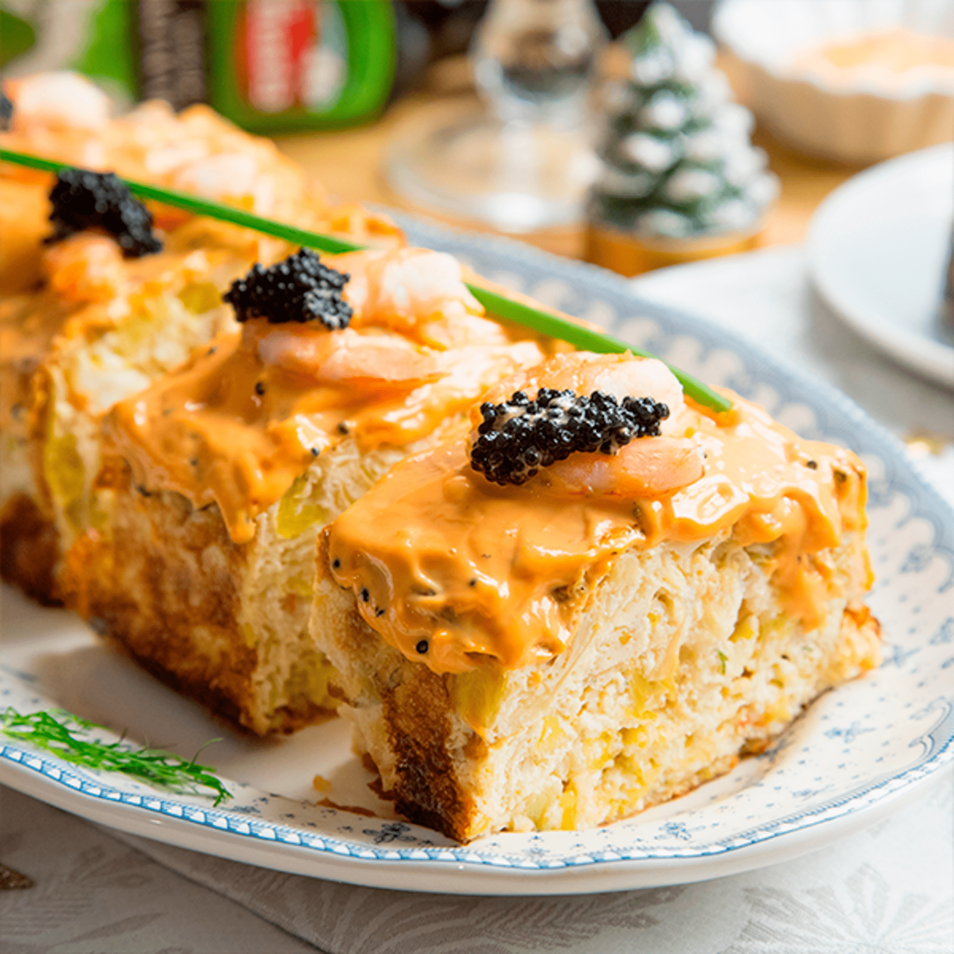 - En un cuenco, batimos 4 huevos. Añadimos 200 ml. de nata para cocinar y 1 cdta. de eneldo fresco picado. Mezclamos. Añadimos los puerros y langostinos escurridos, 2 cdas. de Aceite de aguacate.